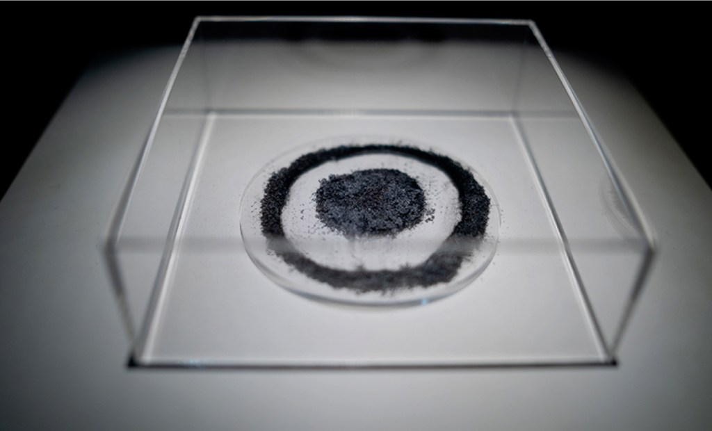“Ash circle” dust from scraped photograph and acrylic 15x 15 cm.